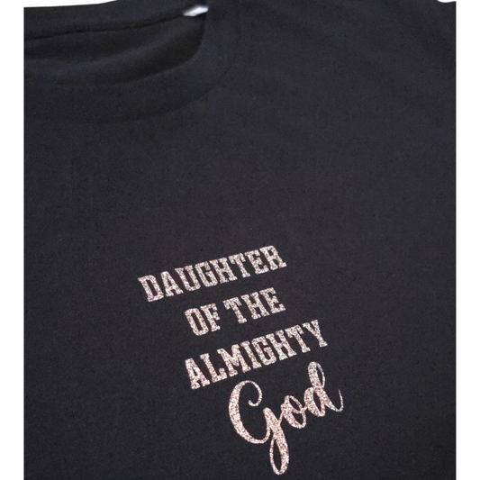DAUGHTER OF THE ALMIGHTY GOD - Black T-shirt with a beautiful glittery print